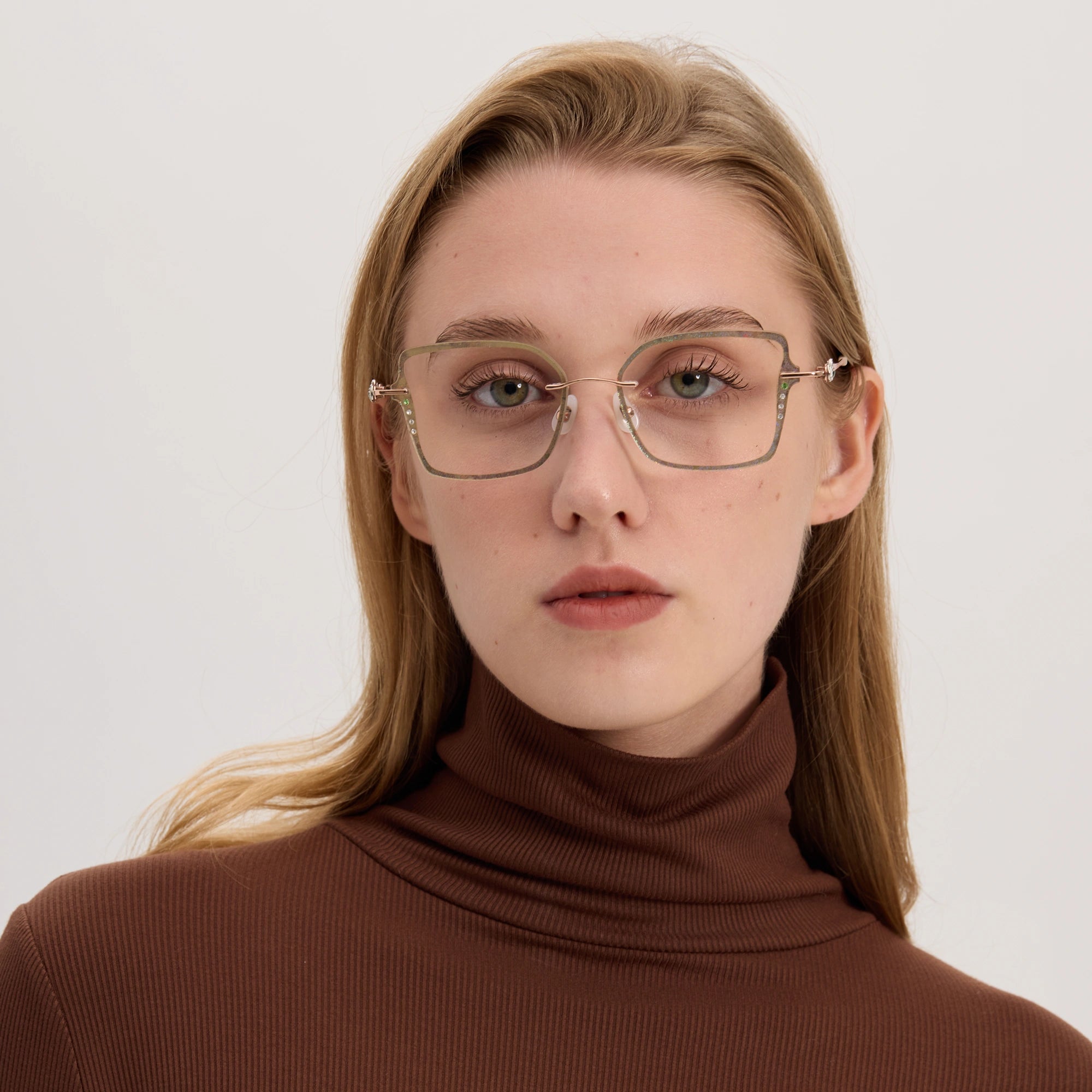 Featuring jade nose pads and a lightweight titanium frame, these glasses are incredibly comfortable for all-day wear.
